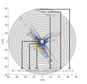 In particular, the descriptor is organized in a polar grid (radial and angular), and the search for similar candidates is performed in two stages: a preliminary fast comparison phase using ring keys, which are average radial vectors stored in a KD-tree, followed by a more detailed Scan Context matching phase based on the similarity measure between the columns of the descriptive matrices using cosine distance. If the distance between two descriptors falls below a predefined threshold, it is assumed that the two scans originate from the same place, thereby validating a possible loop closure.